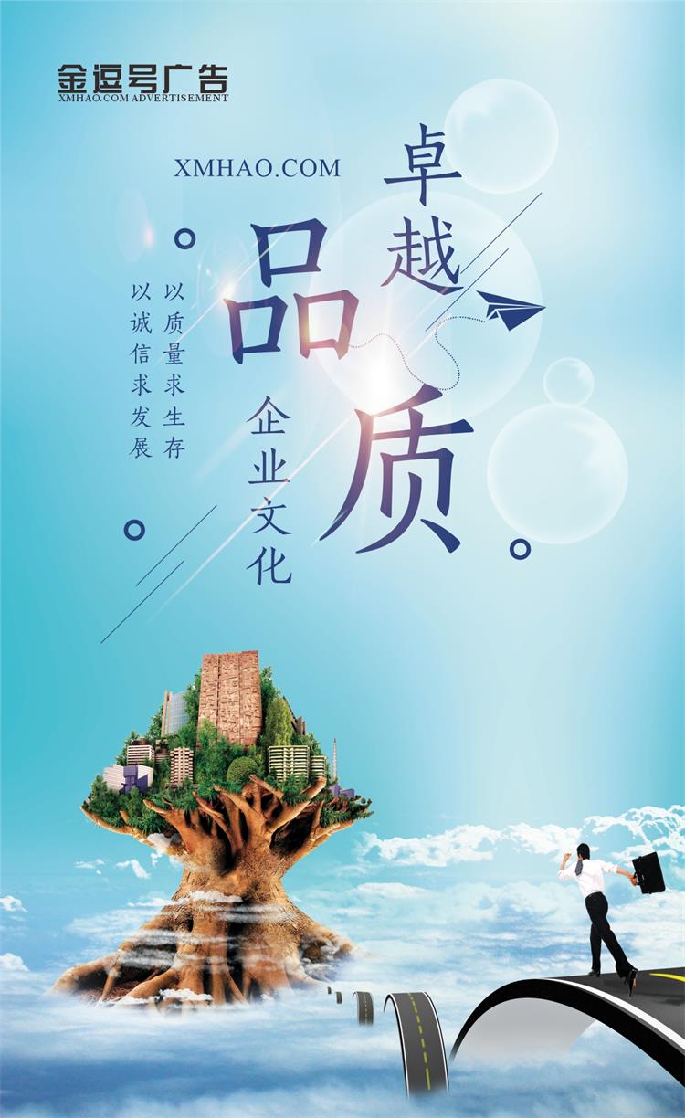 厦门金逗号一家集广告标识设计及制作、大型广告工程施工、活动策划、展览展示等业务为一体的专业、综合性、全案执行的广告公司。在广告工程、广告设计、广告制作、广告发布、广告策划、照明工程、标识系统、广告印刷、礼仪庆典等领域中积累了丰富的行业经验。专业从事企业形象设计、户外广告工程设计制作、楼宇亮化工程设计、展览展示设计、标识导向、礼仪庆典策划等,专业化设计师及工程师力求用视觉创意打造“品牌魅力,专业选择放心”,让视觉效果与商业营销思想浑然一体,让产品焕发青春。